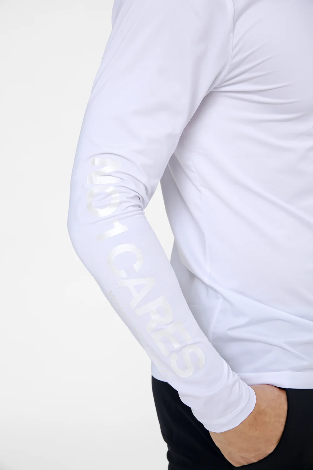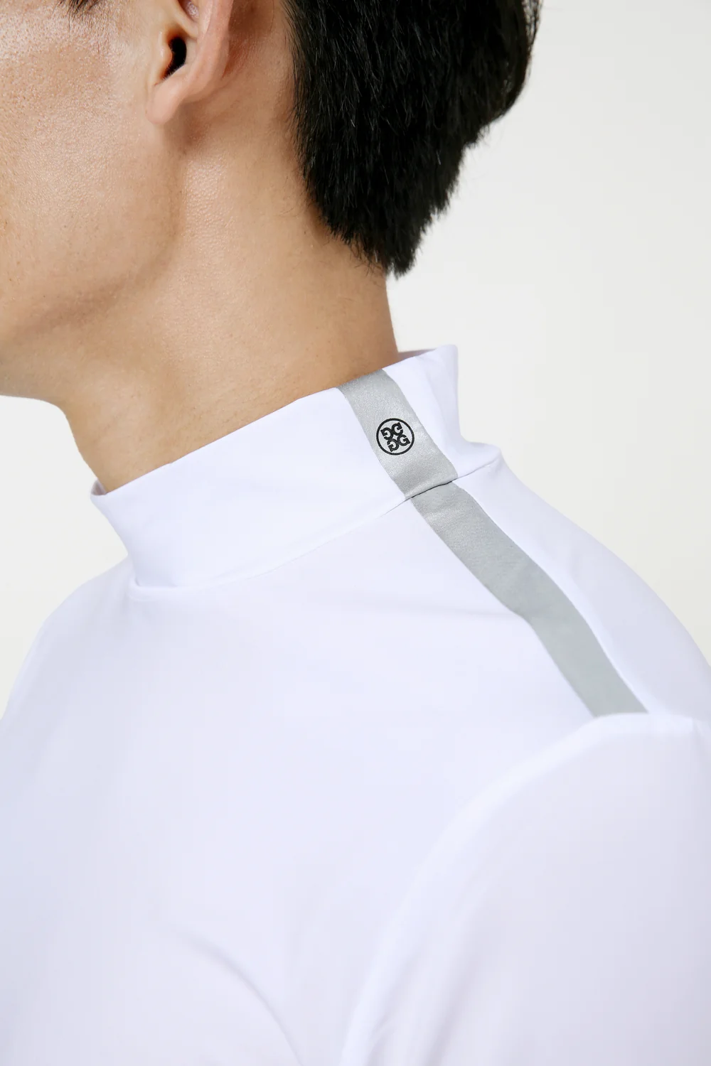 넥 라인 Circle G’s 로고와 소매 “NO 1 CARES” 프린팅으로 지포어만의 아이덴티티 표현