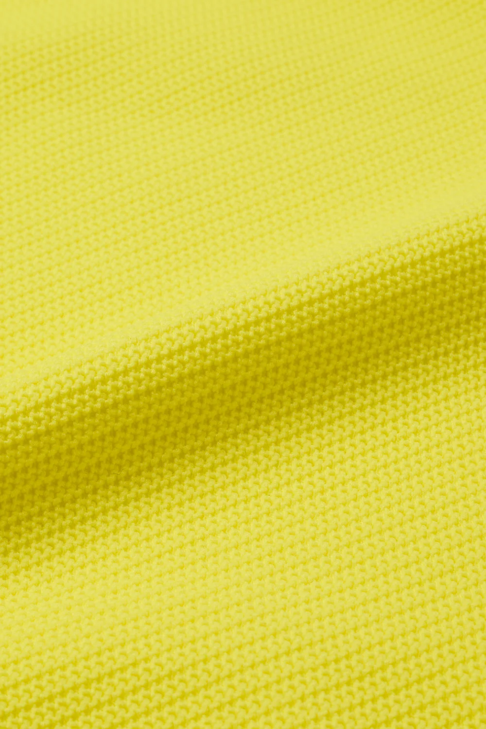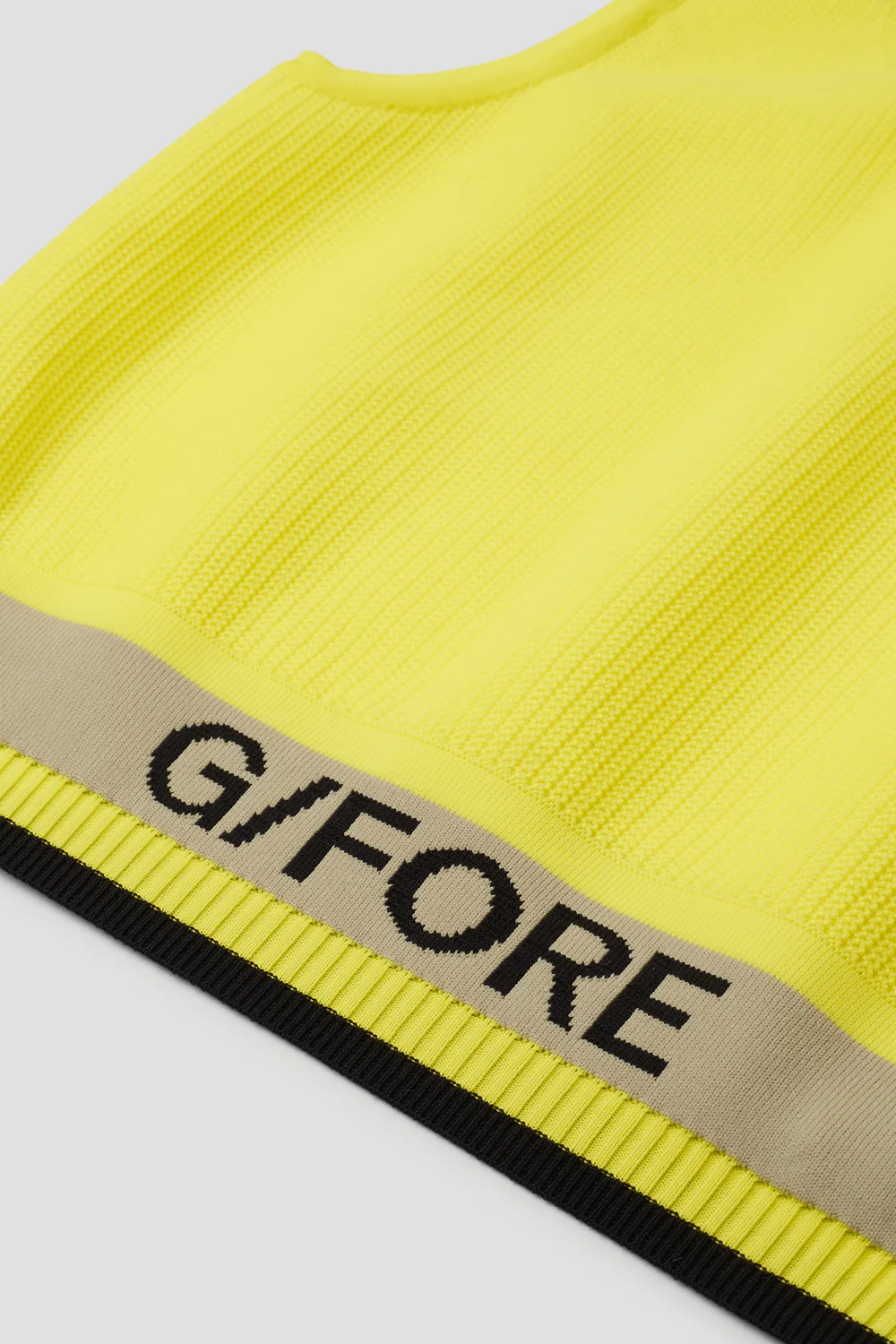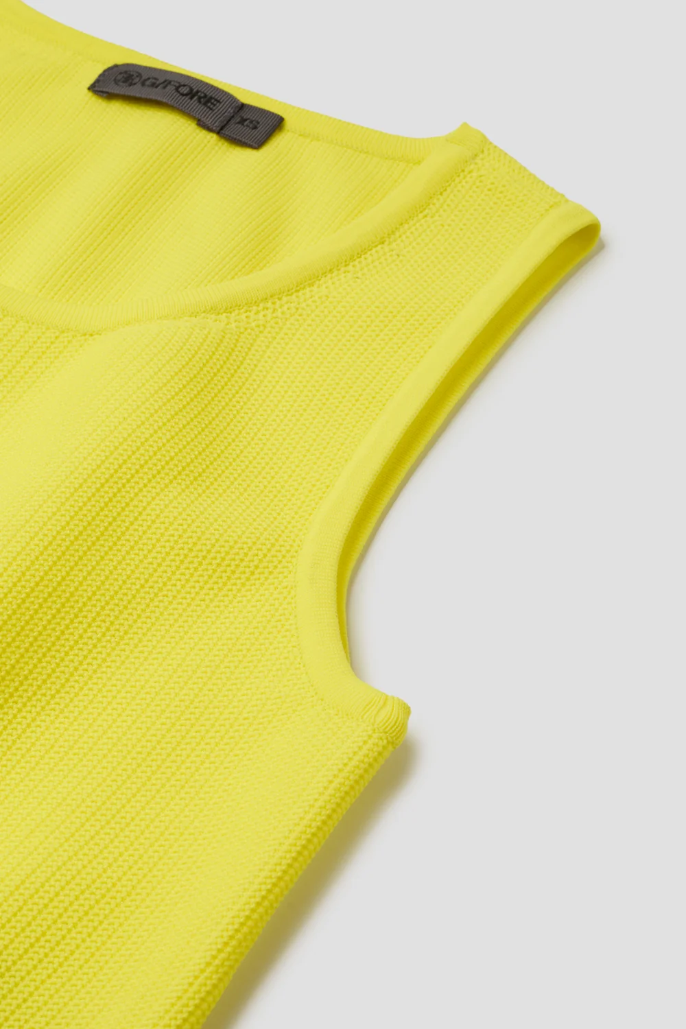 전체 이중 메쉬 조직으로 제작된 크루넥 디자인의 슬리브리스 스웨터.