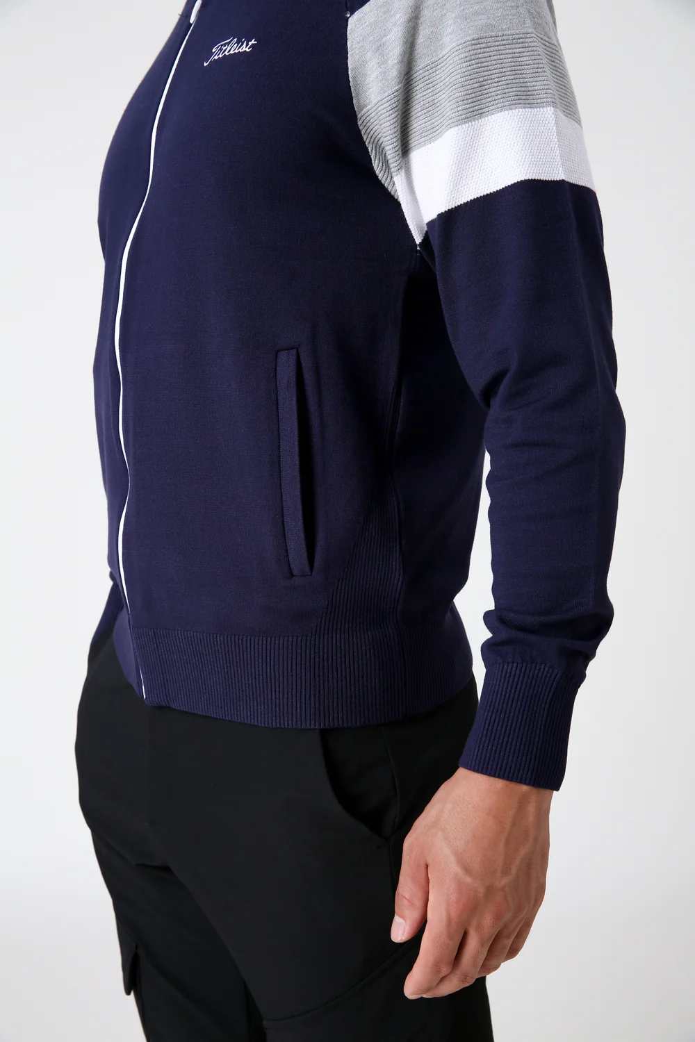 앞판에 신축성이 좋은 우븐 원단을 사용하여 활동성 강화.