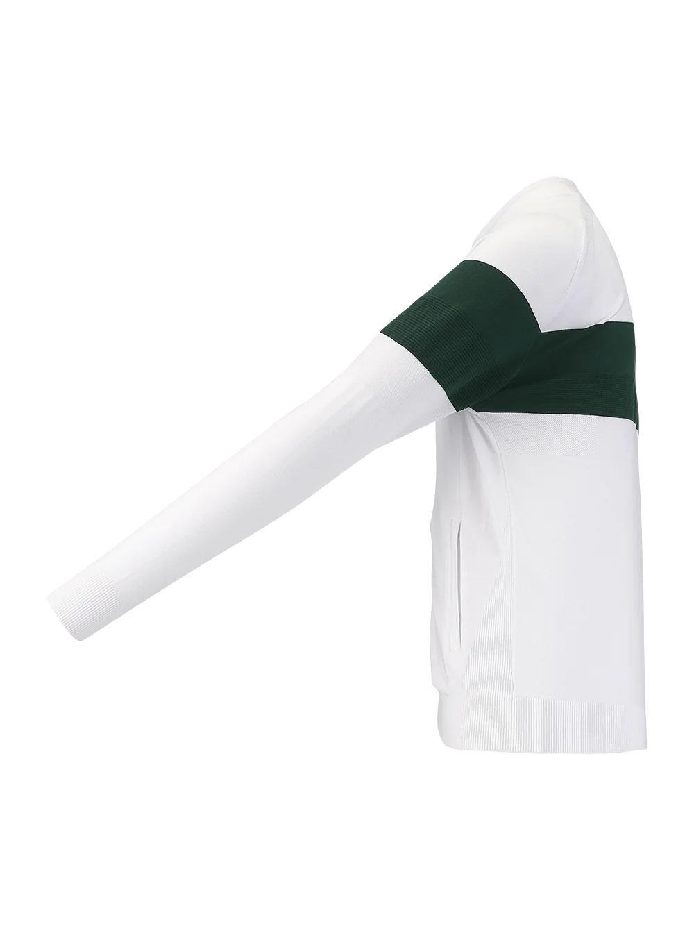 앞판에 신축성이 좋은 우븐 원단을 사용하여 활동성 강화.