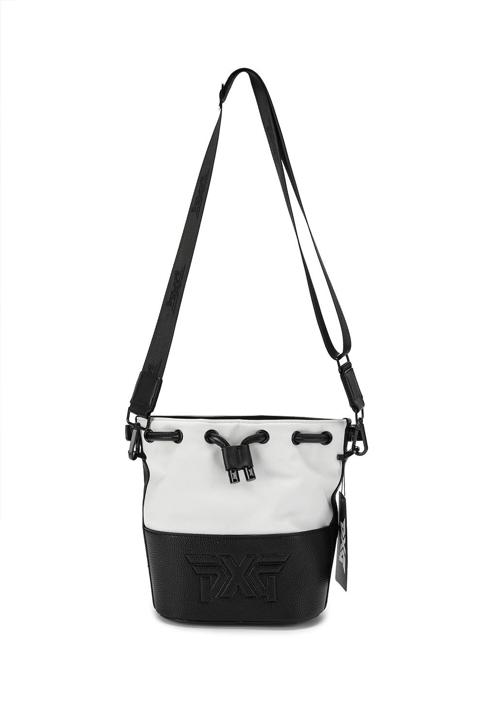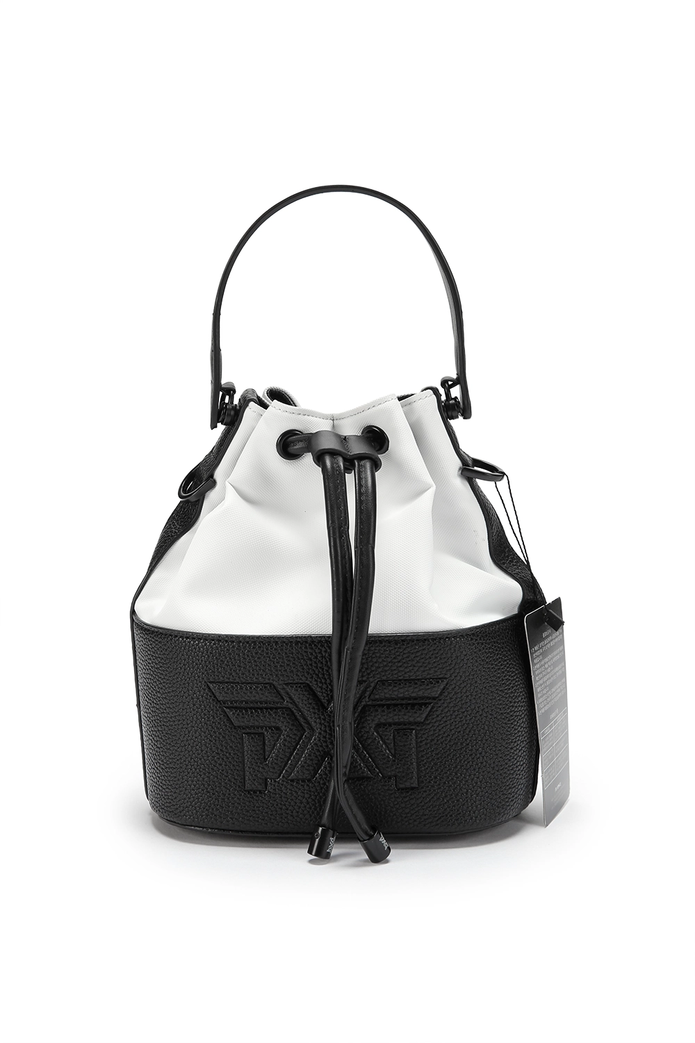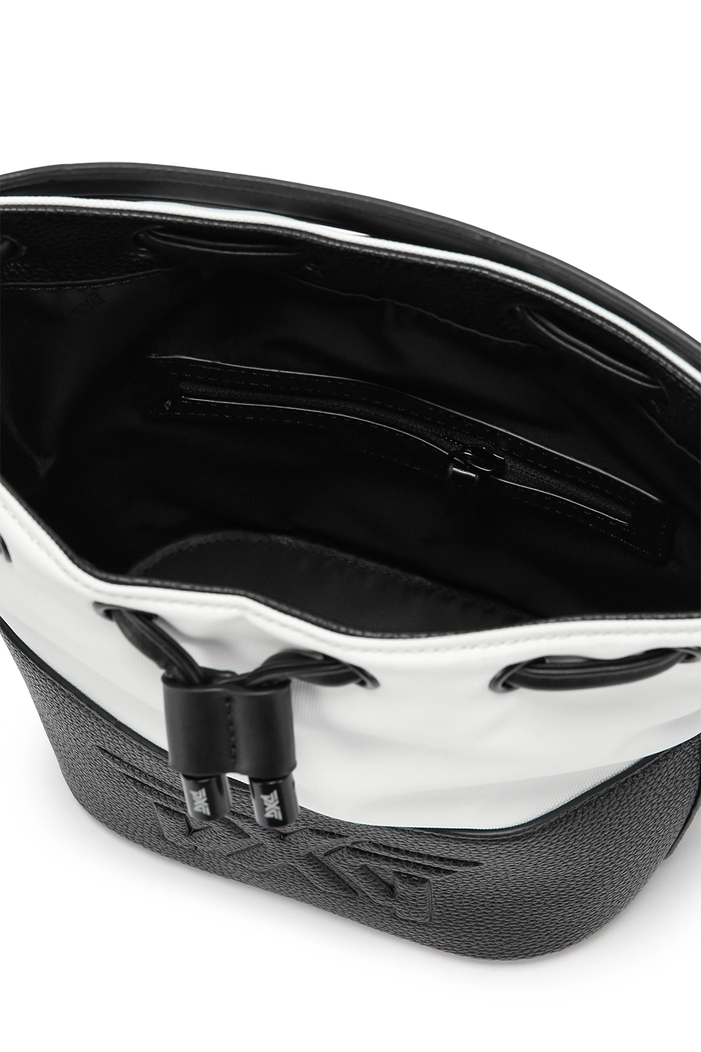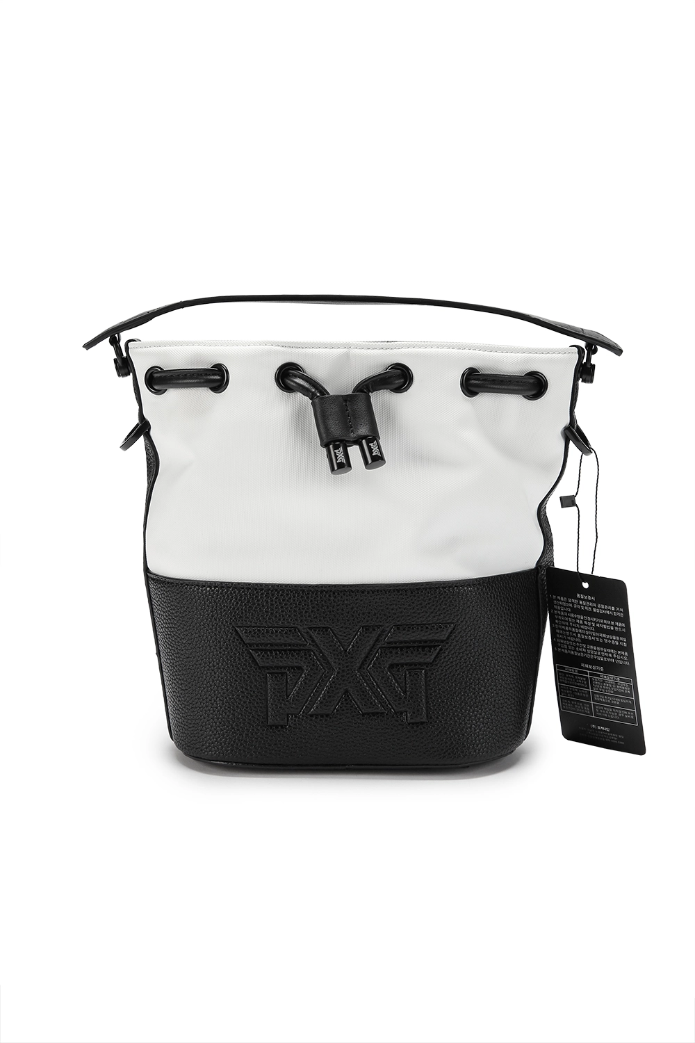 PXG WOMENS TWO COLOR PATCHWORK BUCKET BAG-WHITE