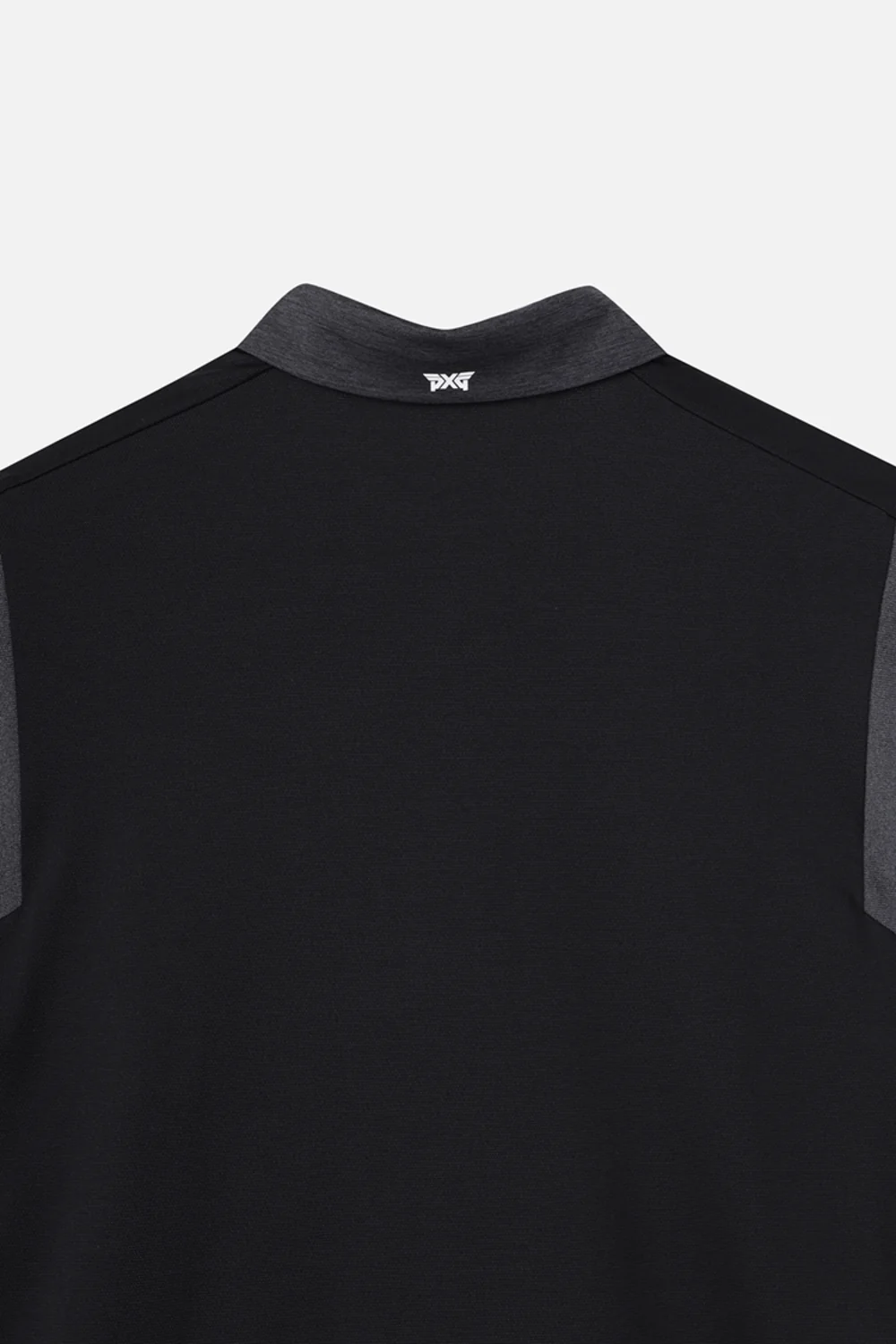 조직감 원단과 등 니트 포인트 배색을 활용하여 고급스러움 연출