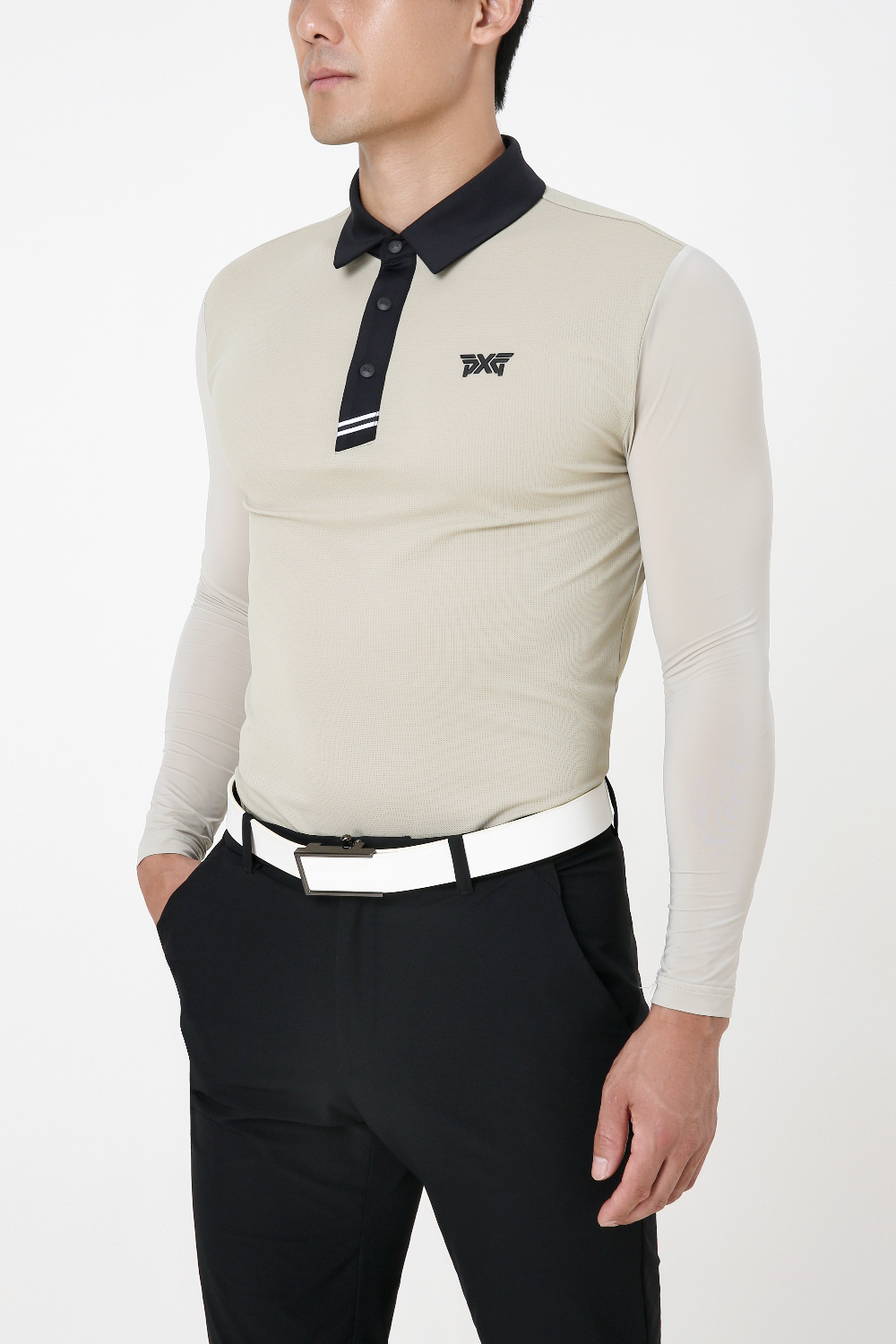 여름 컬러 포인트 냉감소매 기본에리 긴팔 티셔츠