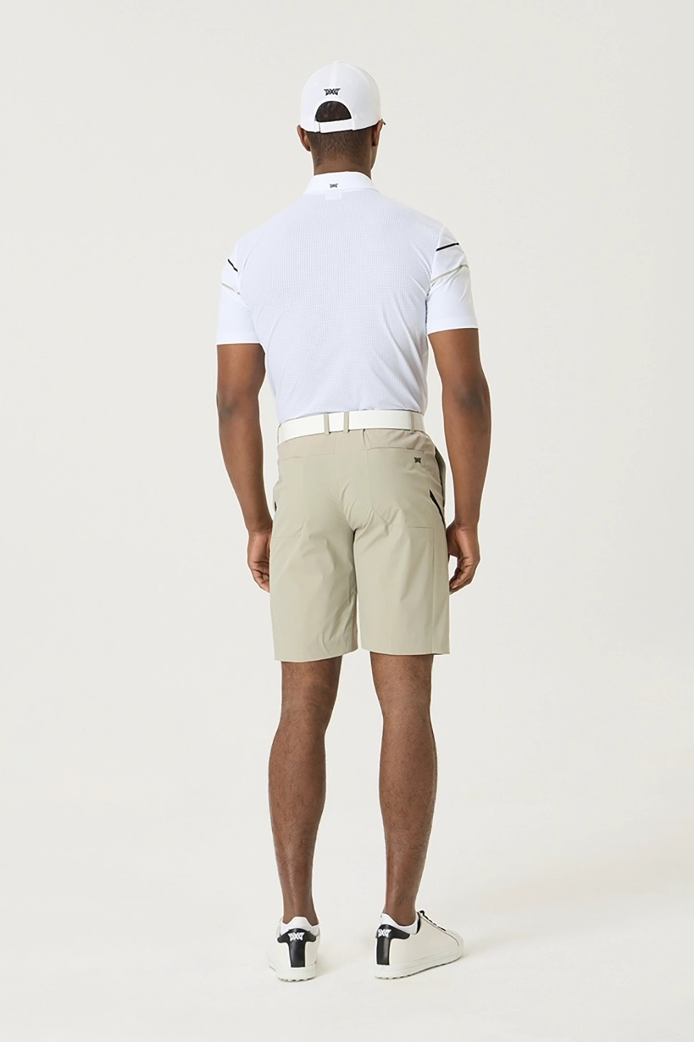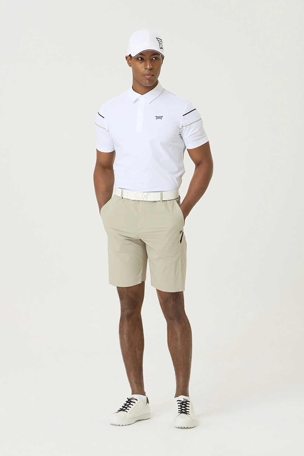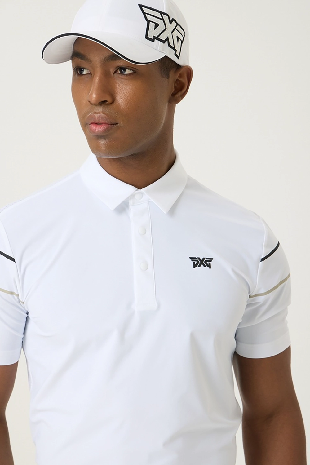 소매 프린트 배색 포인트를 사용하여 엣지있는 코디 연출 등 전체에 펀칭 원단을 사용해 벤틸레이션 기능성을 강화하여 한여름 라운딩에 최적화 된 아이템