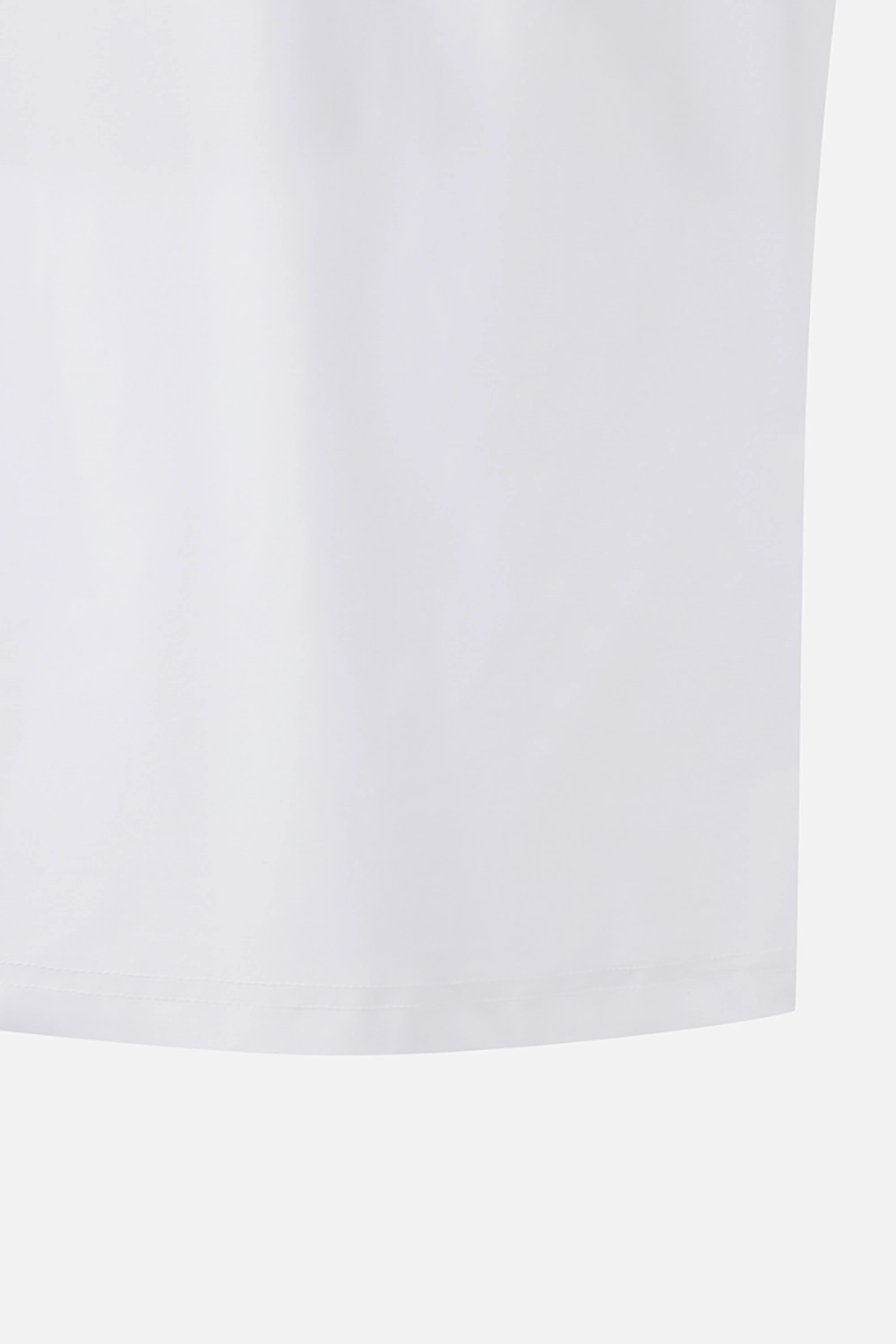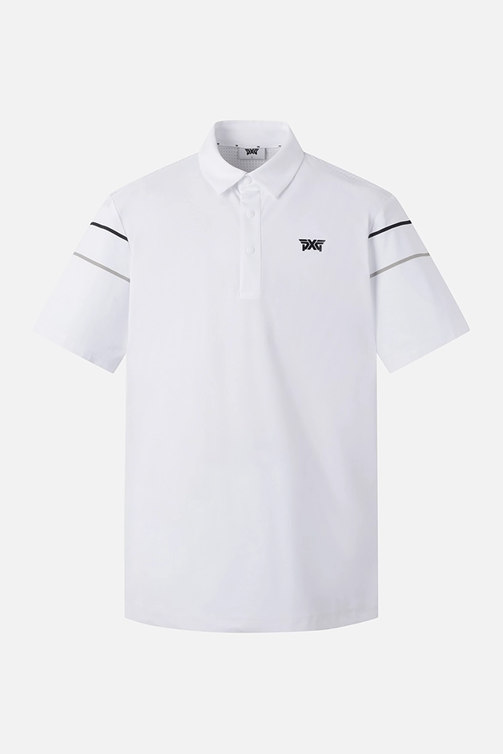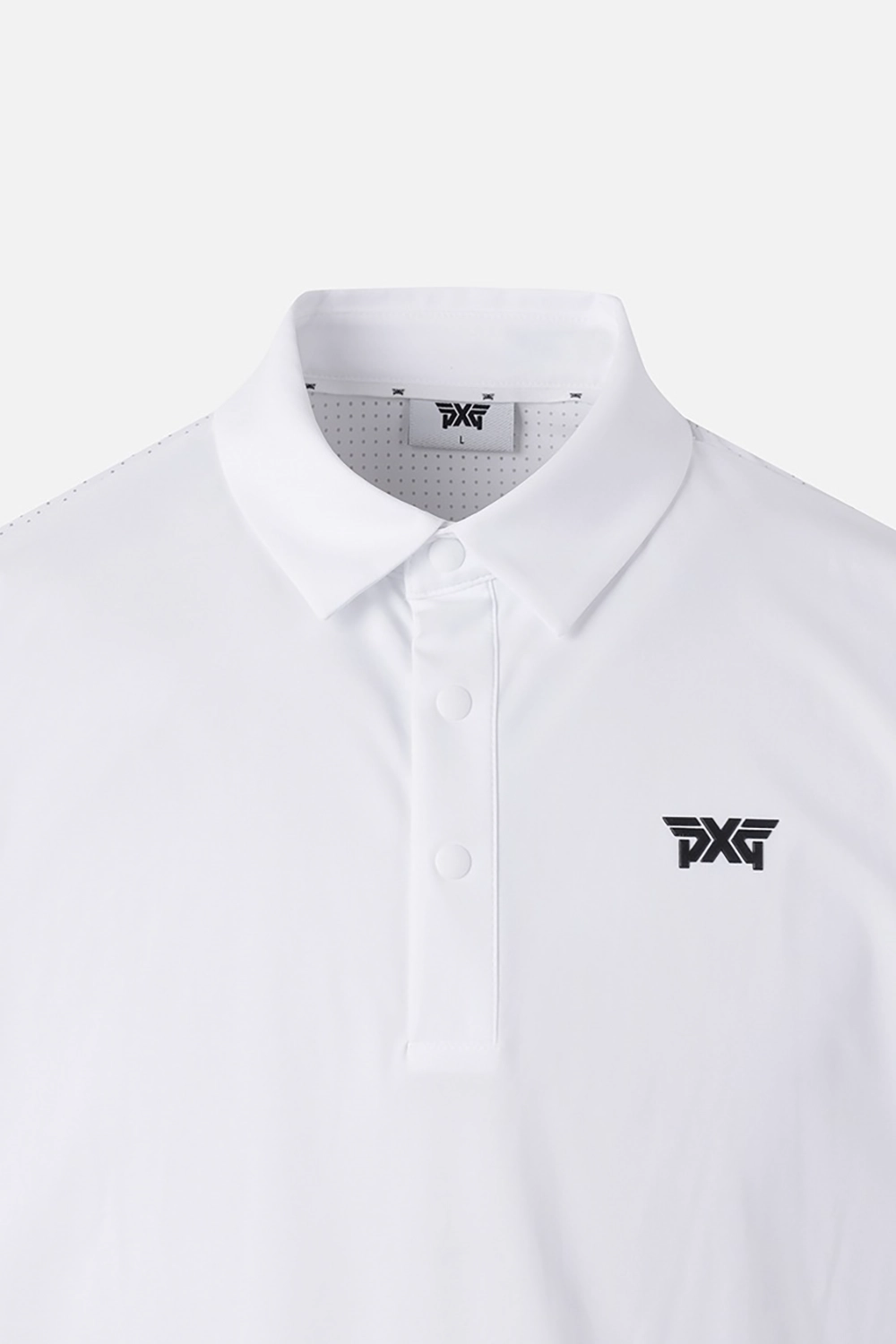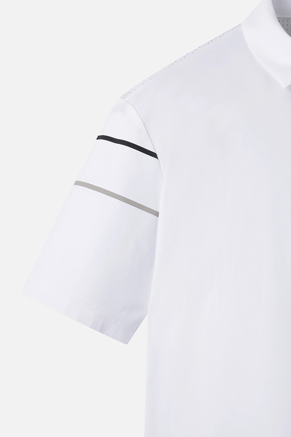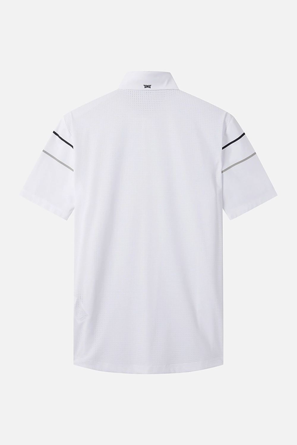 SUMMER COLOR LINE POINT PERFORATED COLLAR SHORT-SLEEVE-WHITE