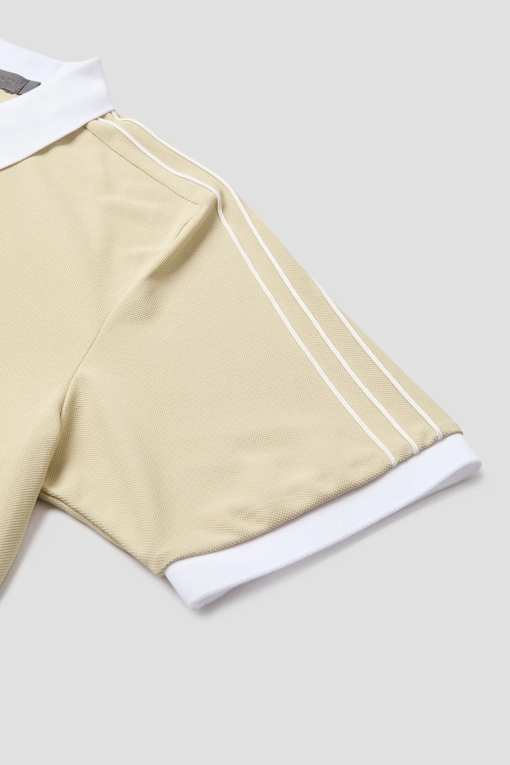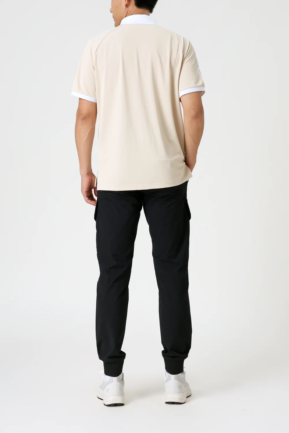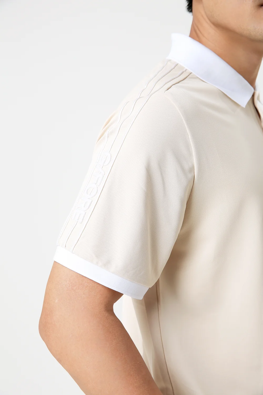 숄더 테이프 디테일이 가미된 솔리드 컬러의 칼라 티셔츠