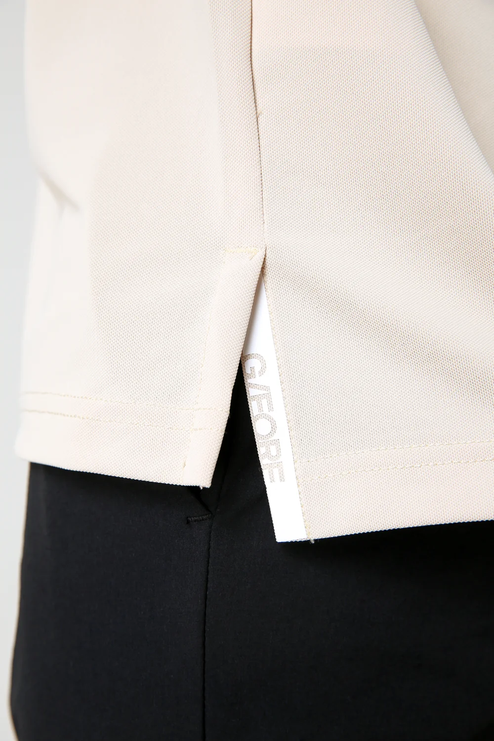 넥 라인부터 소매 끝까지 내려오는 컬러 블록 테이프에 G/FORE 볼륨 체인 자수 디테일을 더해 지포어만의 아이덴티티를 살림