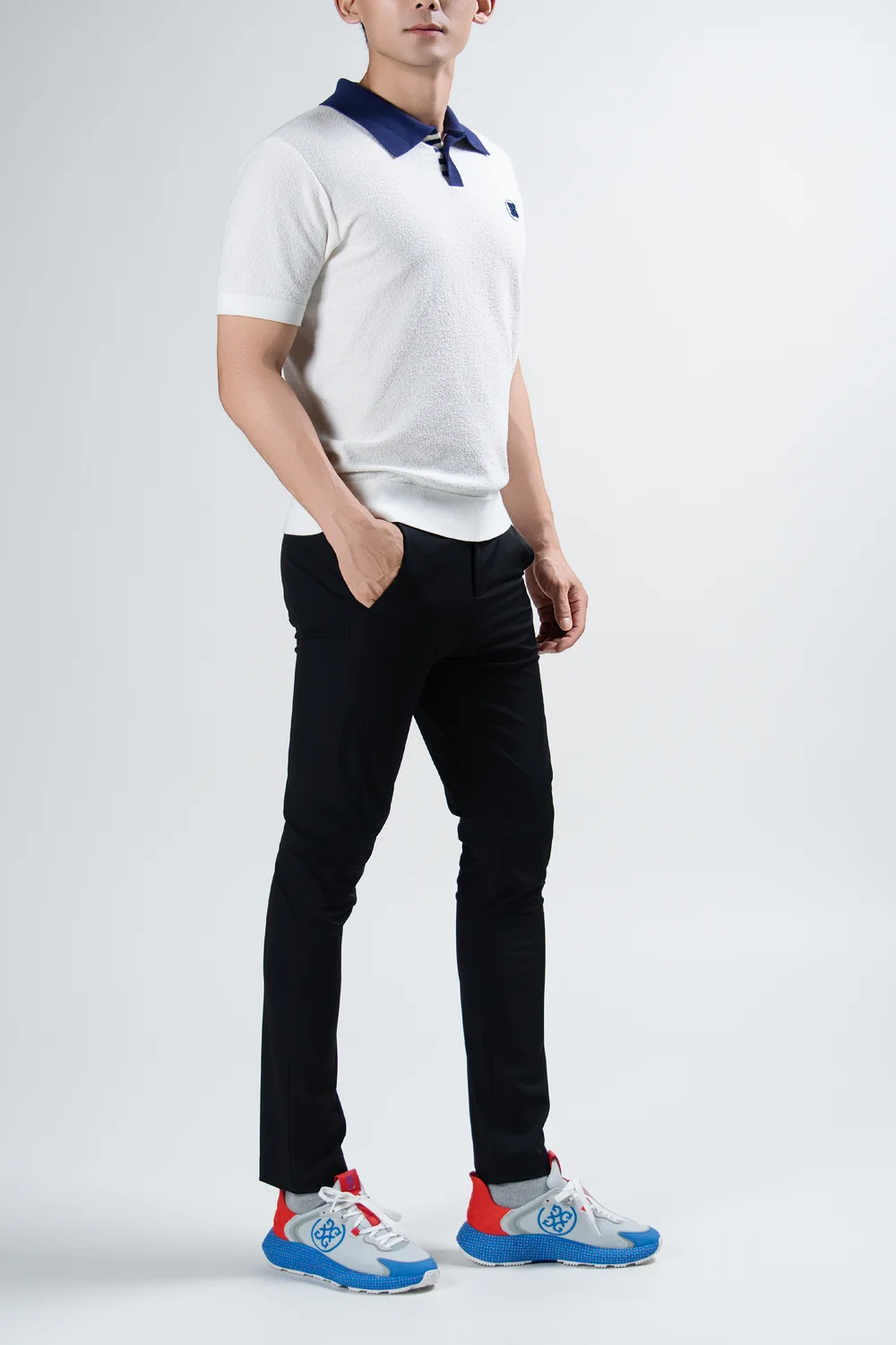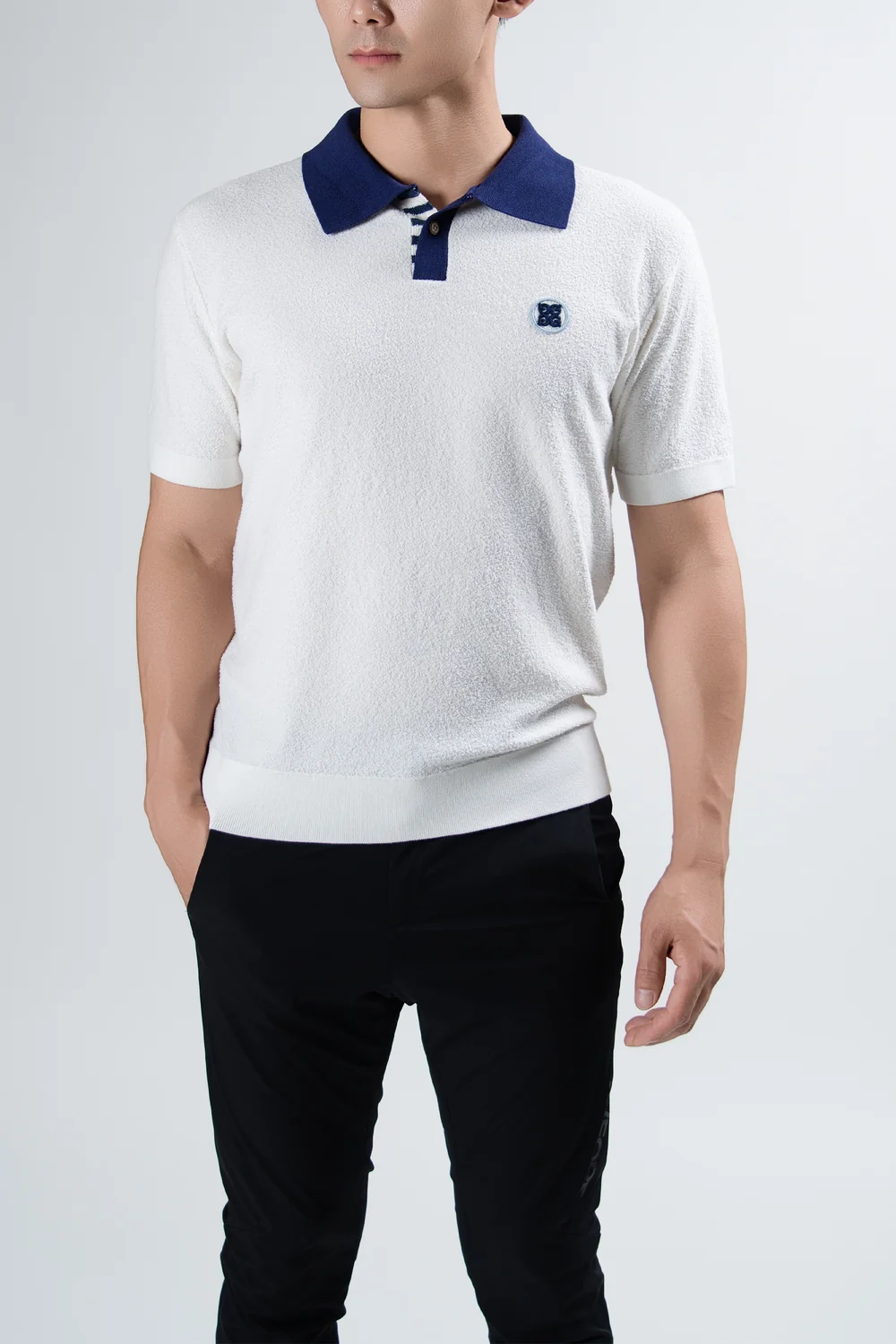 부드러운 터치감의 테리 소재 반팔 폴로 티셔츠.
