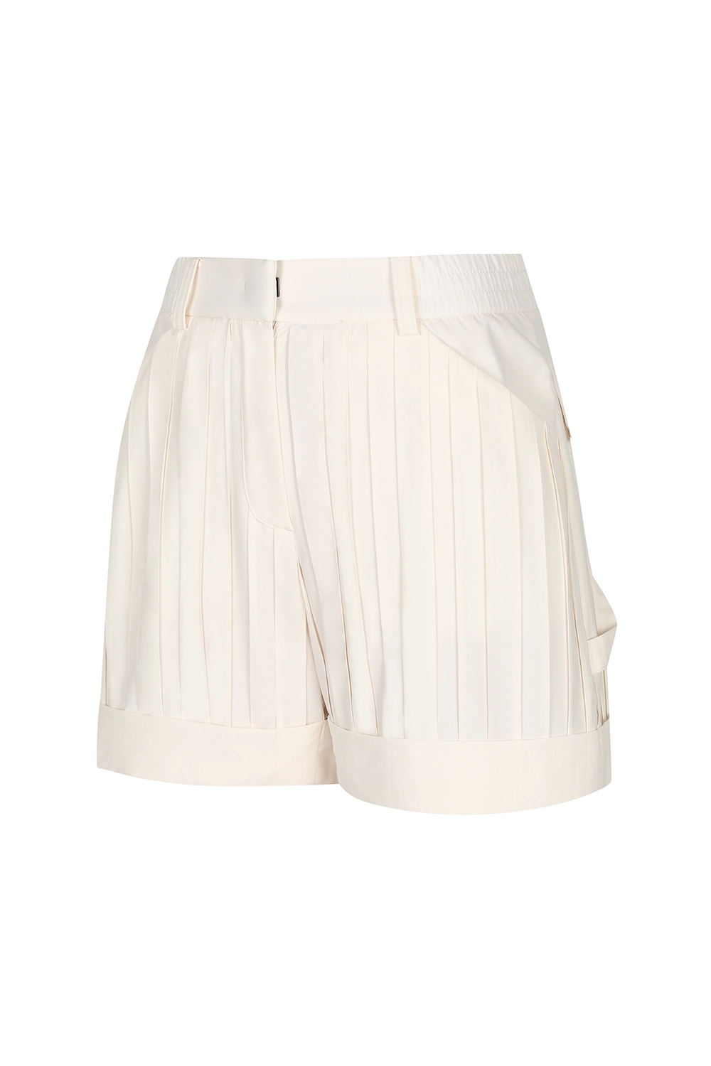 WOMEN 3D TECH BUILIDING PLEATS SHORT PANTS-WHITE