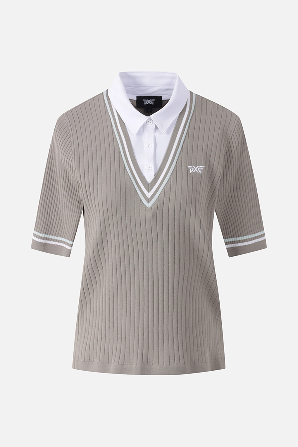 몸판에 골조직을 사용하여 슬림하게 연출 가능한 반팔 니트