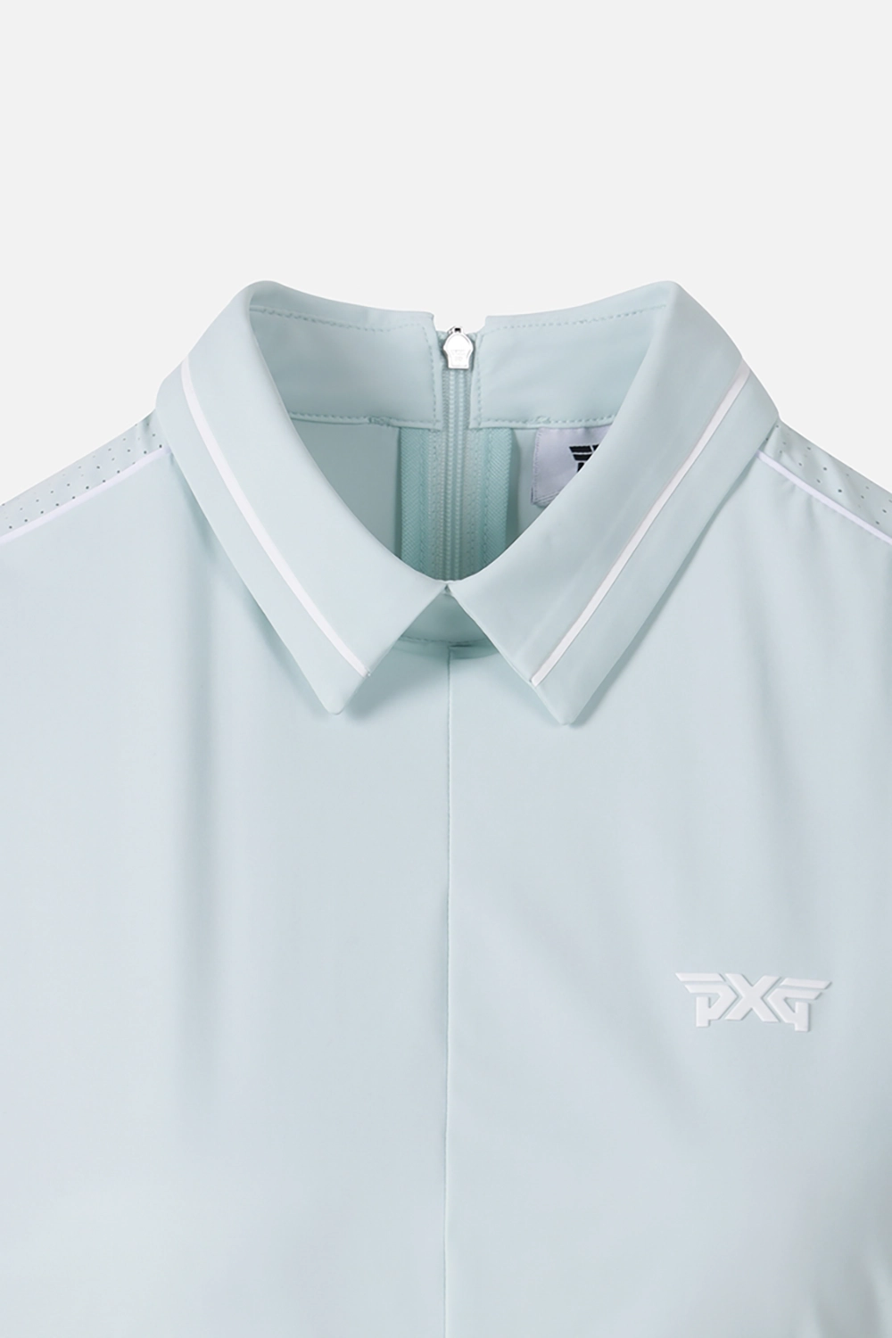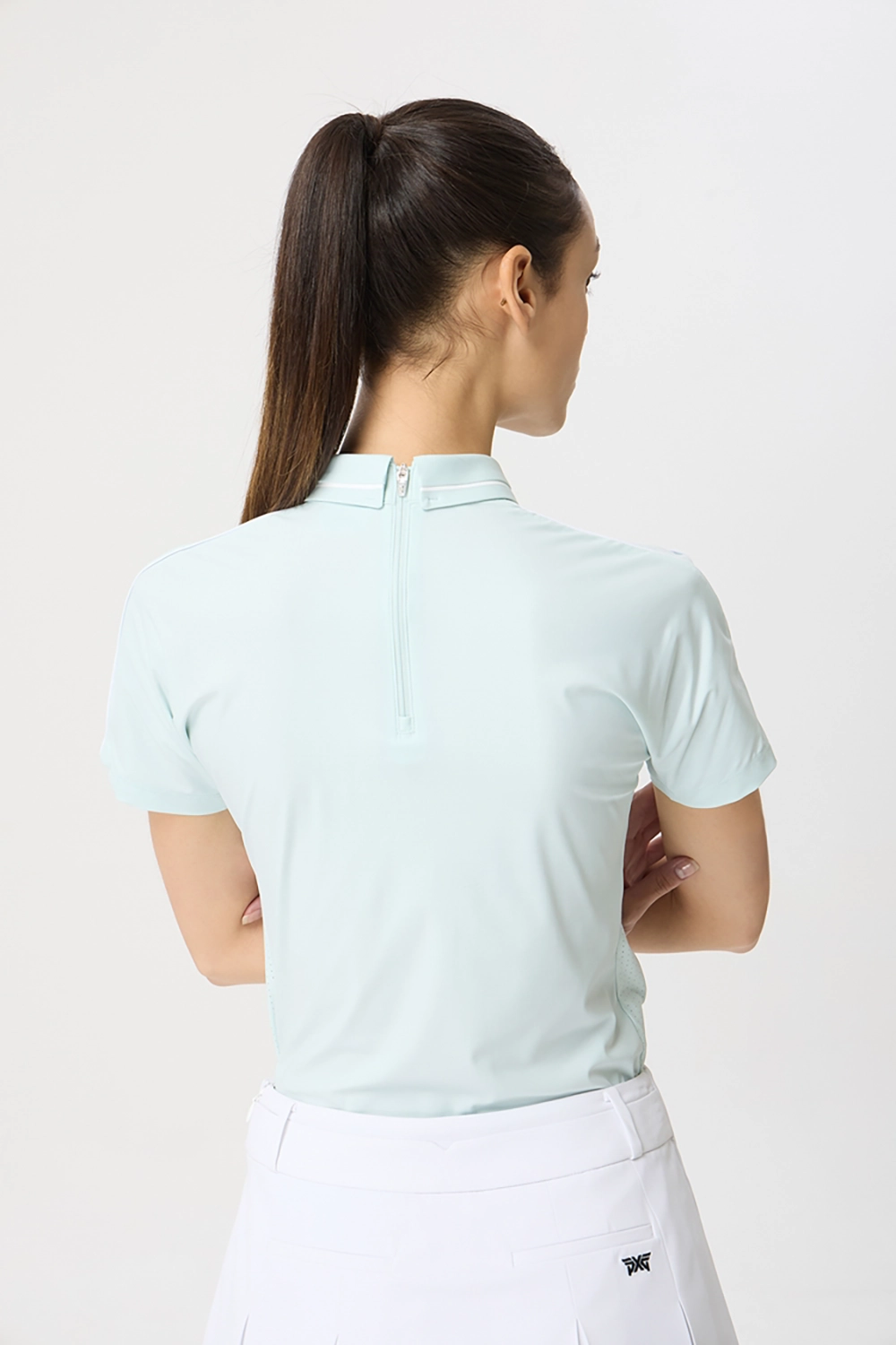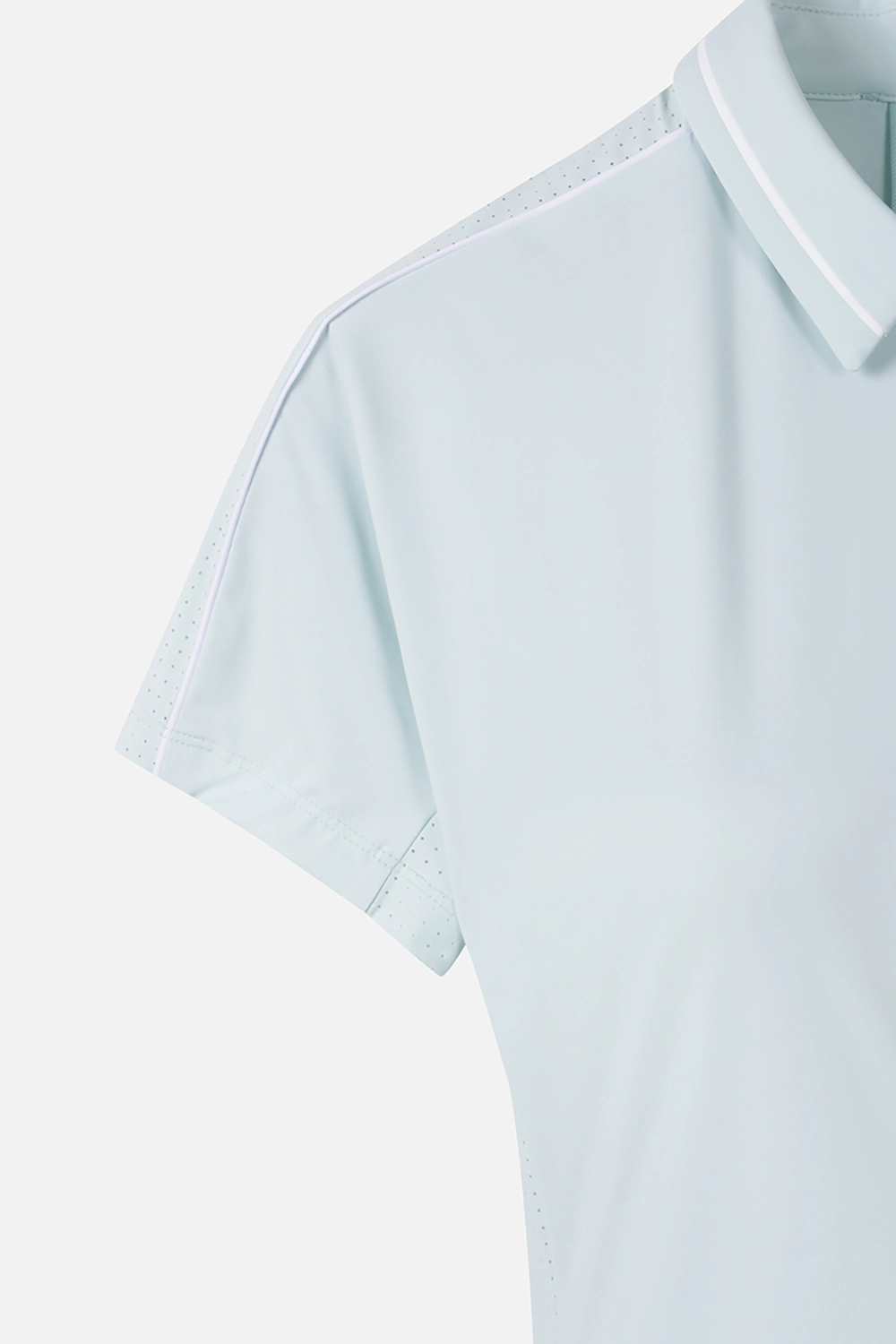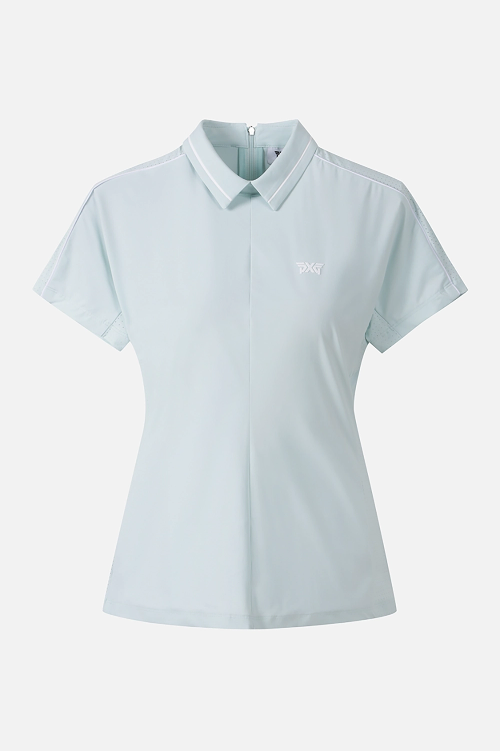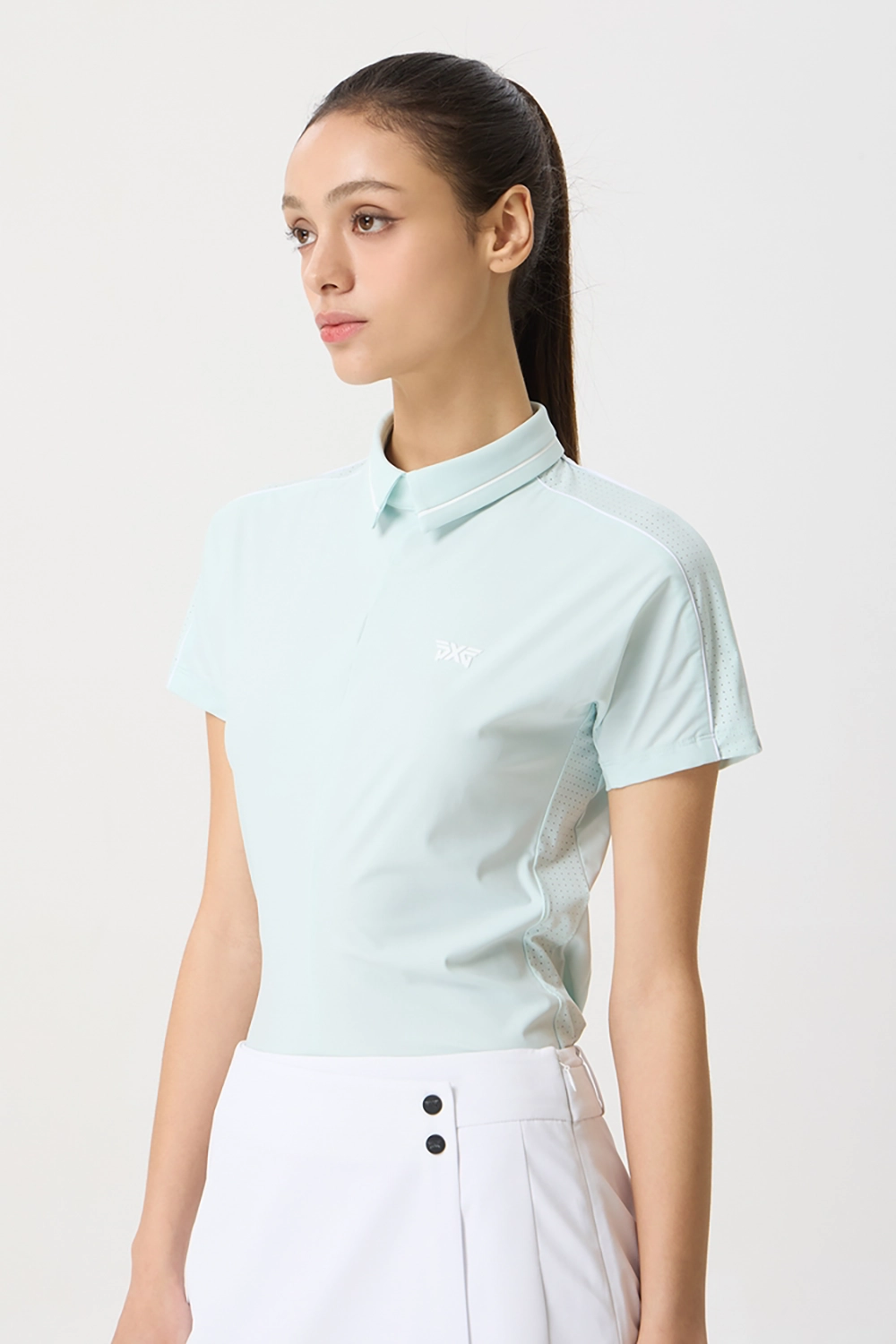 WOMENS SUMMER PERFORATED COLLARED SHORT SLEEVE-MINT