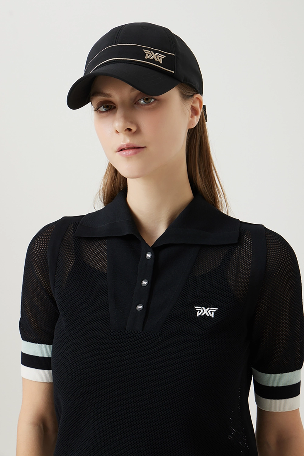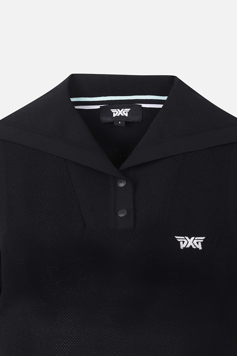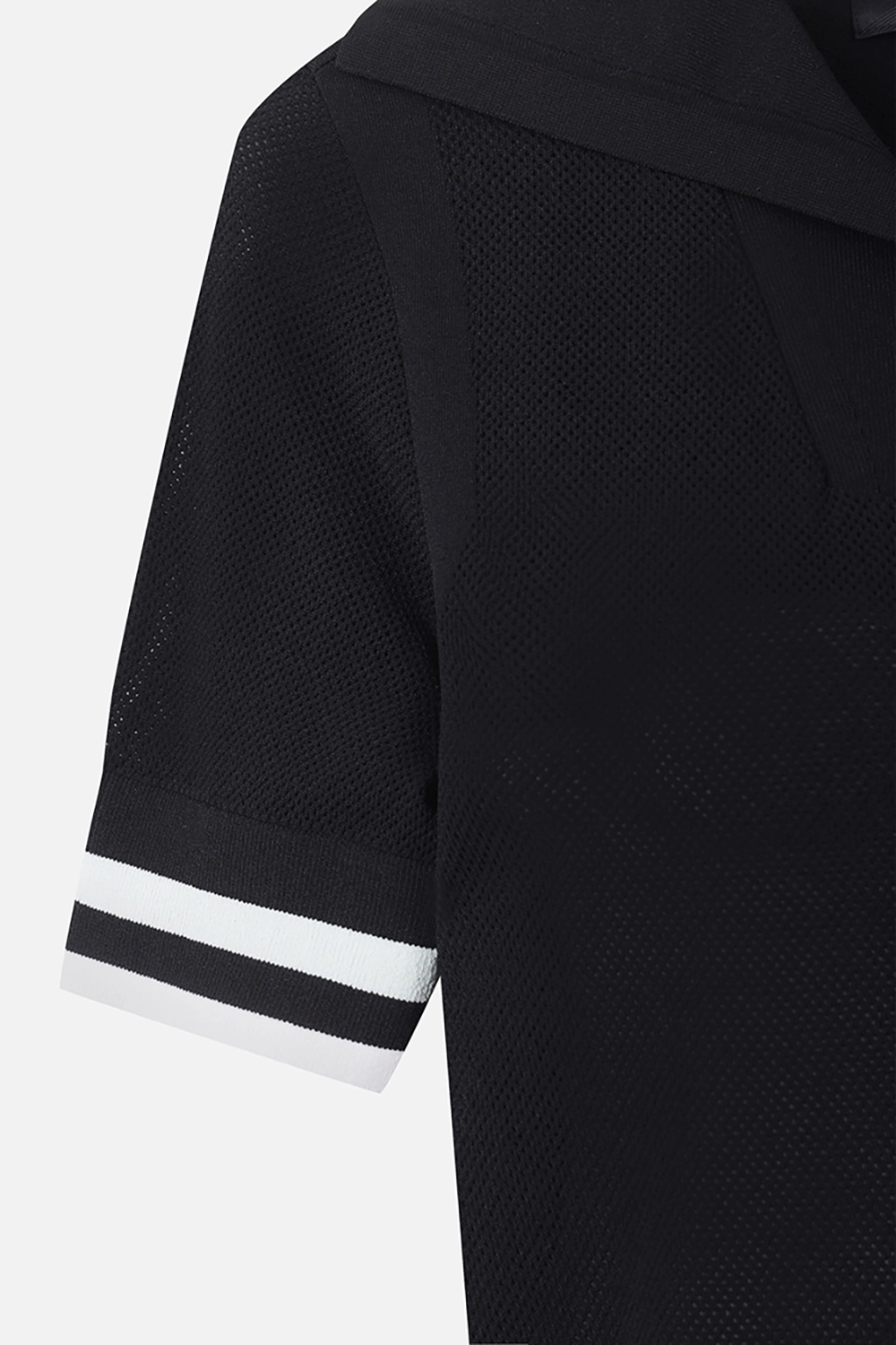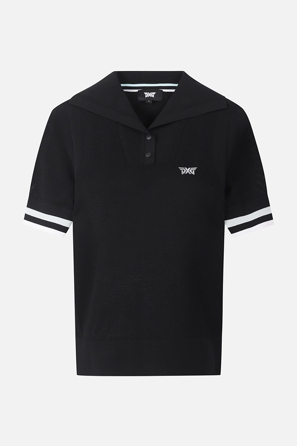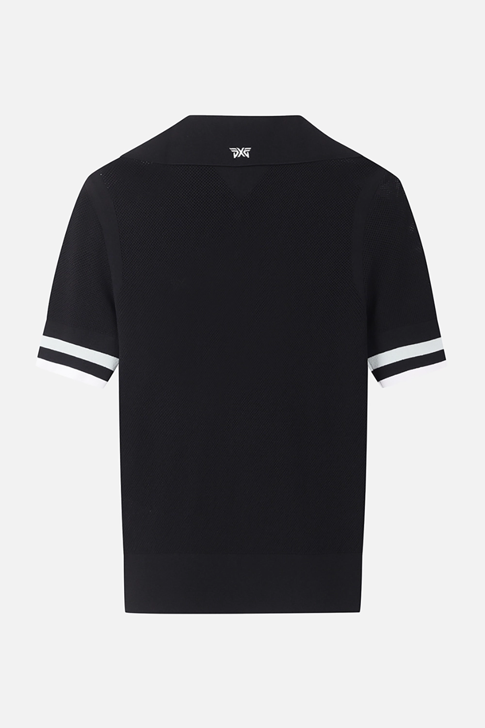 WOMENS SUMMER POINT COLLARED SHORT SLEEVE KNIT-BLACK